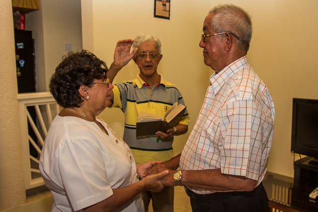 The time in Barbados is short, so I am spending more time enjoying it than writing about it 🙂 Yesterday was my parents’ fortieth wedding anniversary, as they were here in Barbados visiting my sister (their daughter), we had a celebration here for them. Joan (said sister/daughter) had arranged to have Bishop Dickson stop by to renew their Marriage Vows, with us present, along with Joan’s sister-in-law’s family (our family now 🙂 ) and a couple who are friends with Joan and Gerard (did you guess that this was Joan’s husband? no?), and who were also originally from Guyana.